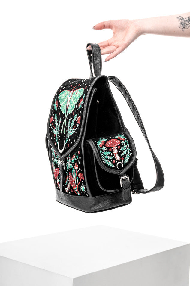 Perfect for school, work, or wandering, this gothic cottagecore gem is as practical as it is spellbinding. Featuring a stunning Luna Moth embroidery, it's like carrying a piece of magic wherever you go! Our whimsical backpack is designed for witches, fairies, and all who dare to dream <3