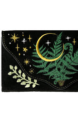 The wallet is oblong and made of faux suede, with a faux leather interior. It’s very easy and convenient to open with a strong clasp. Its front is decorated with embroidered floral motifs: herbs, ferns, twigs. We’re absolutely sure that every Druidess, Wise-Woman, and Herbal Priestess would be very proud of such a wallet!