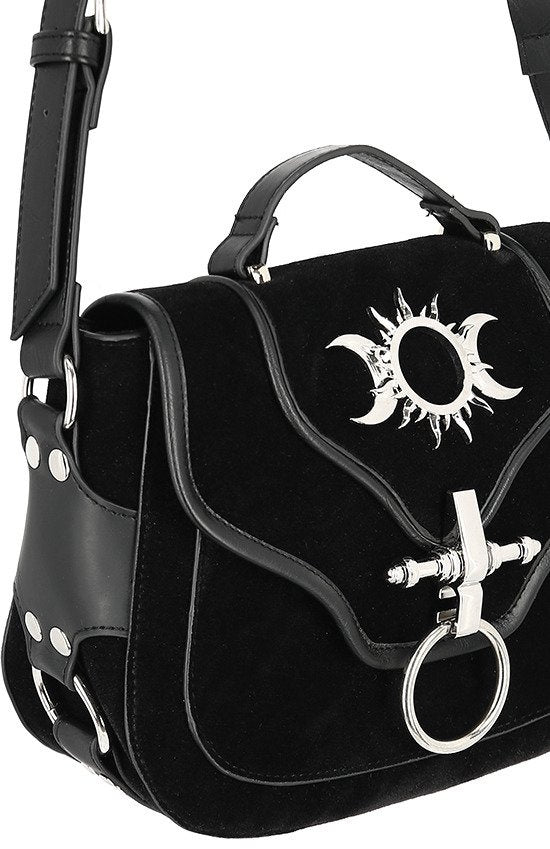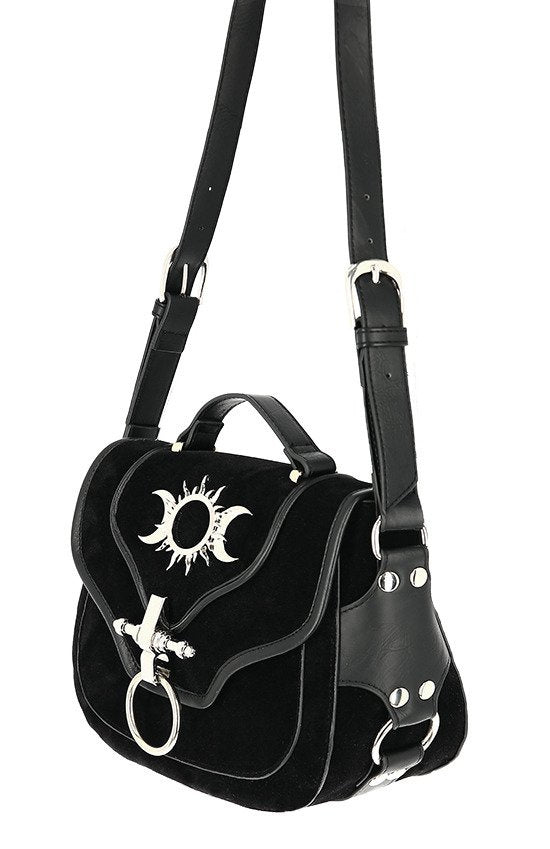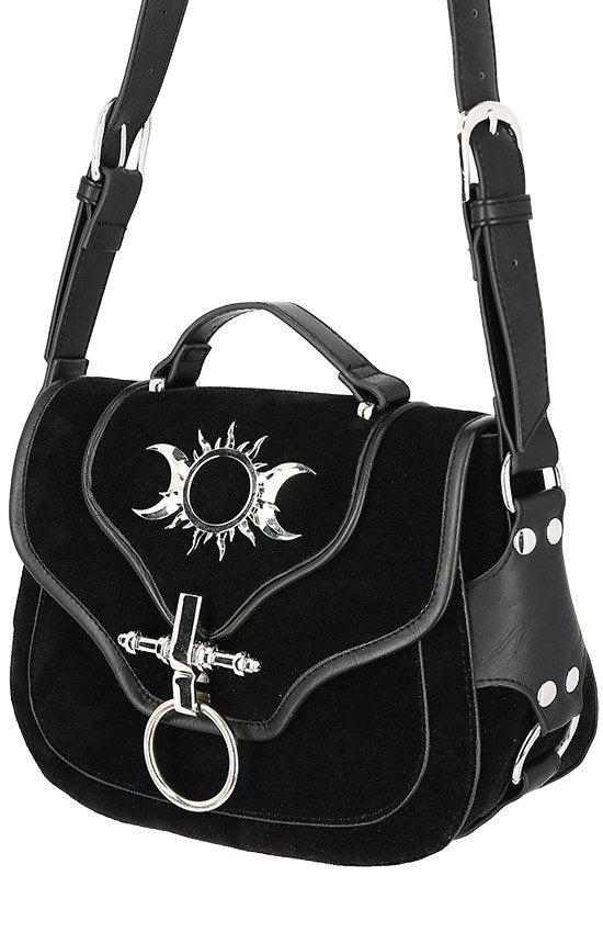 TRIPLE GODDESS BAG Gothic handbag with crescent moons and sun