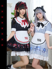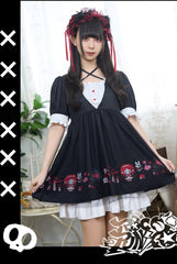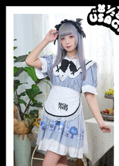 Dream Alice 🗝️Sailor collar piece ruffled bow tulle shape short sleeve OP maid apron dress original Gothic Lolita court style