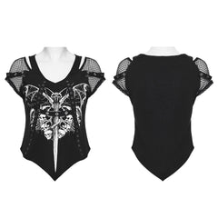 Gothic Mesh Sleeve Punk T-Shirts with Skull Graphics