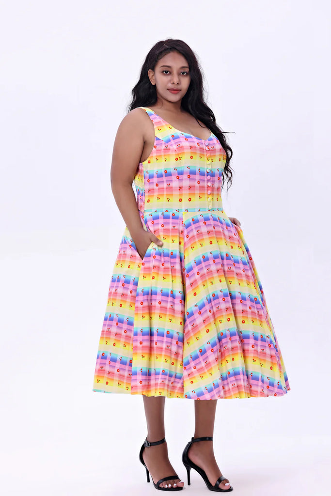 שמלה בגזרת שנות ה-50 עם הדפסים מושלמים