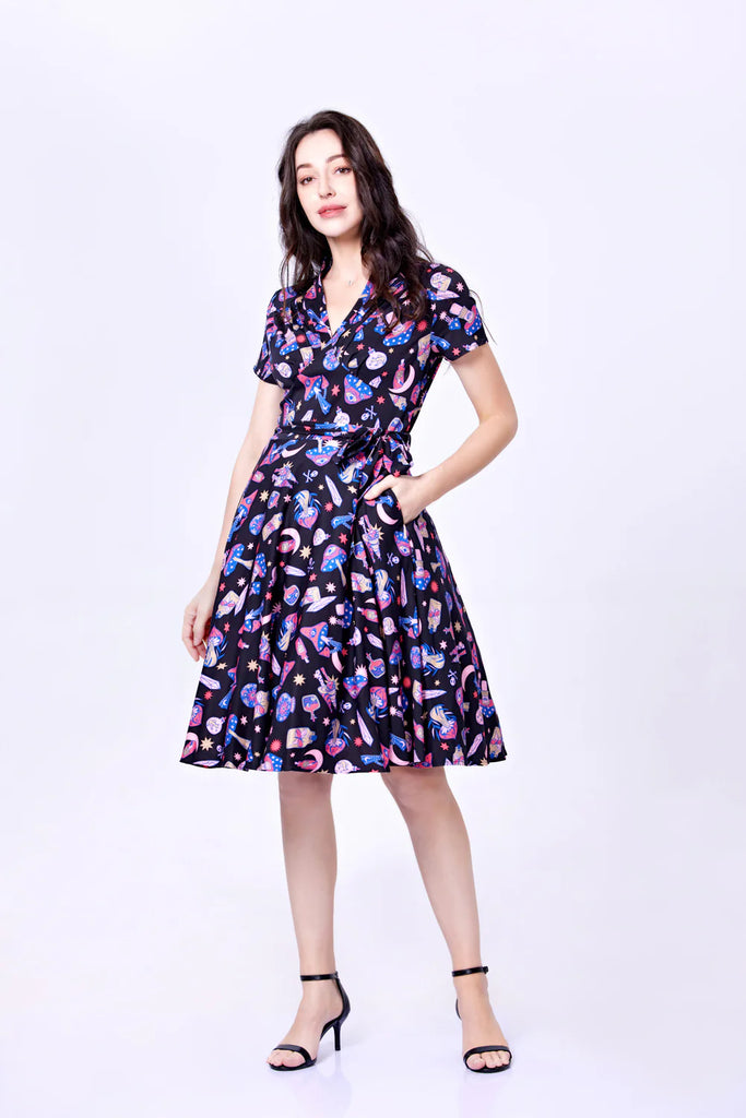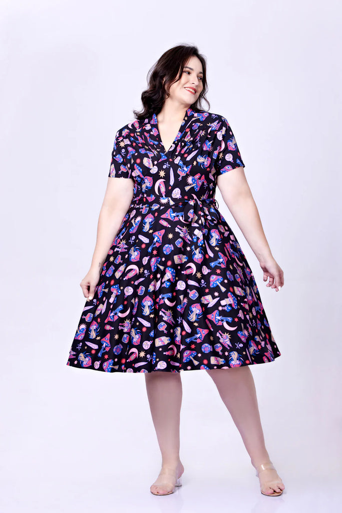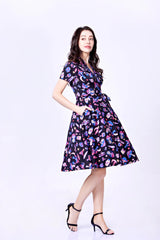 שמלה בגזרת שנות ה-50 עם הדפסים מושלמים