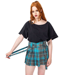 WOE IS ME SKIRT - GREY/TURQUOISE CHECK