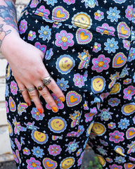 היכונו לעוף על עצמכן עם אוברול טוויל נמתח בהשראה רטרו! עם הדפס שובב בסגנון מדבקות Y2K, האוברול הזה מחזיר את כל הווייבים הנוסטלגיים. מושלם כדי להוסיף קצת כיף לארון הבגדים שלכן.