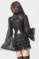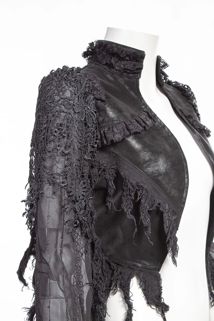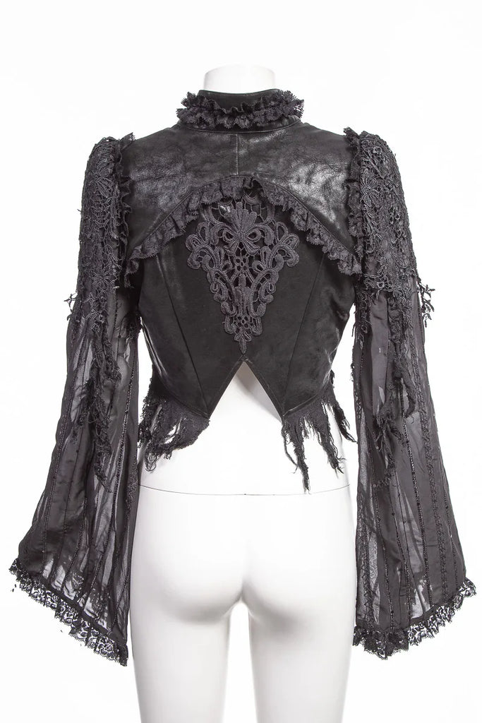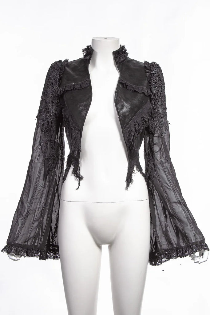 The Gothic Jacket with Lace and Sequined Sleeves and Vintage Tassel Detail is an exquisite and luxurious outerwear piece that embodies the essence of gothic elegance. This jacket combines the delicate beauty of lace and sequins with vintage-inspired tassel detailing, creating a captivating and sophisticated look that is perfect for formal events and special occasions.