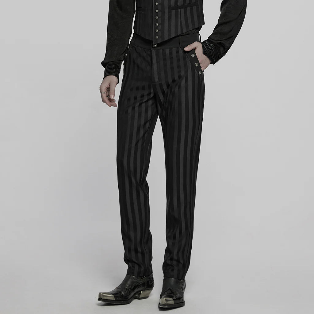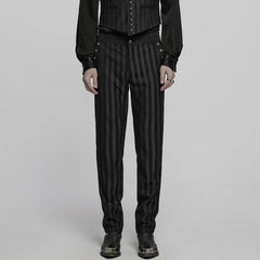 Gothic Striped Slim-Fit Steampunk Trousers