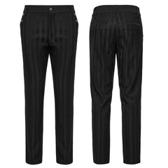 Introducing the Men's Gothic Striped Slim-Fit Steampunk Trousers, embodying a unique blend of gothic flair and steampunk elegance. These trousers are crafted for those who appreciate the intricacies of alternative fashion and wish to stand out with a sophisticated, edgy look. Whether you're attending a steampunk event or simply want to elevate your everyday wardrobe, these gothic pants are your go-to for a timelessly chic appearance.