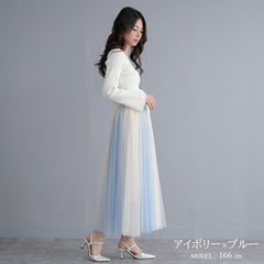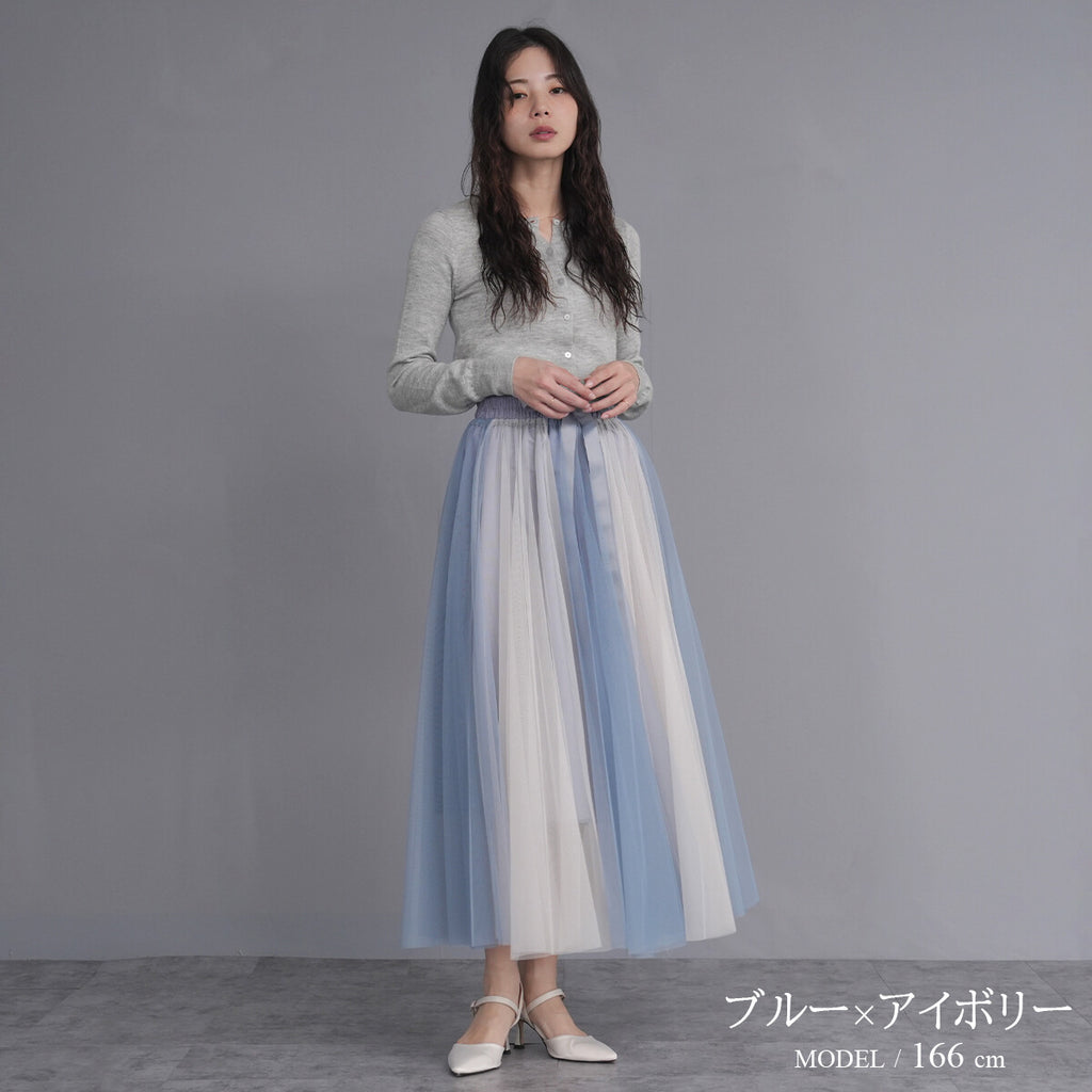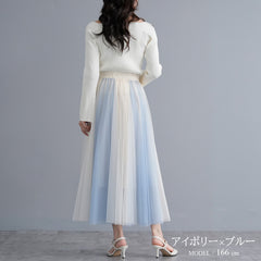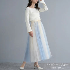 חצאית טול קצפת שני צבעים עם חגורה לבנה