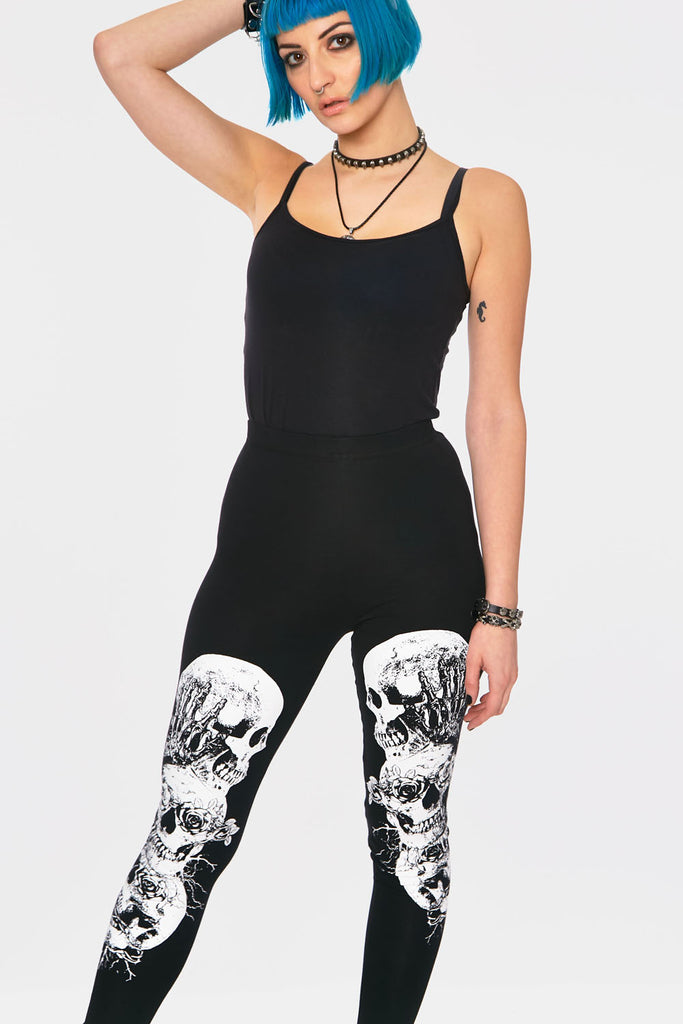 Gothic trio skulls printed leggings with lightweight jersey and high waist.