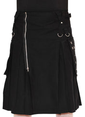 Utility gothic Kilt from Restless'N'wild. Unisex Kilt/skirt with two big pockets decorated with studs amd D- rings. Zipper att the front. Made in 97% cotton 3% lycra.
