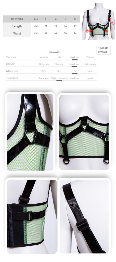 Toxic Vision - women's Cyberpunk mesh underbust style vest harness with strap details