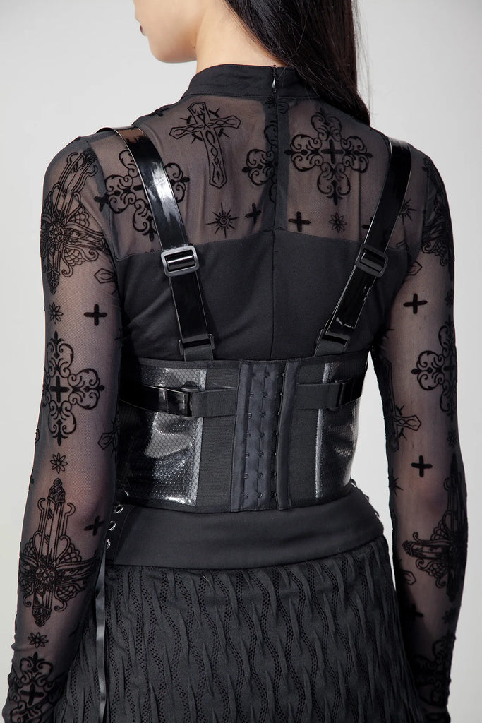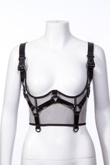Toxic Vision - women's Cyberpunk mesh underbust style vest harness with strap details