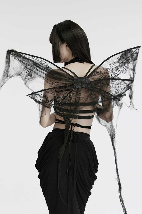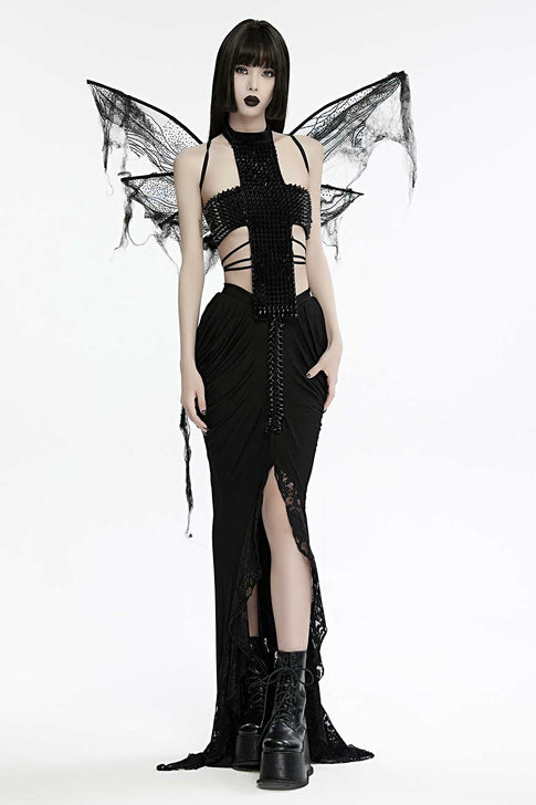 Gothic shredded spider neck tie