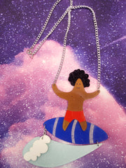 שרשרת עם תליון גדול ומדליק עשוי מחיתוך לייזר.