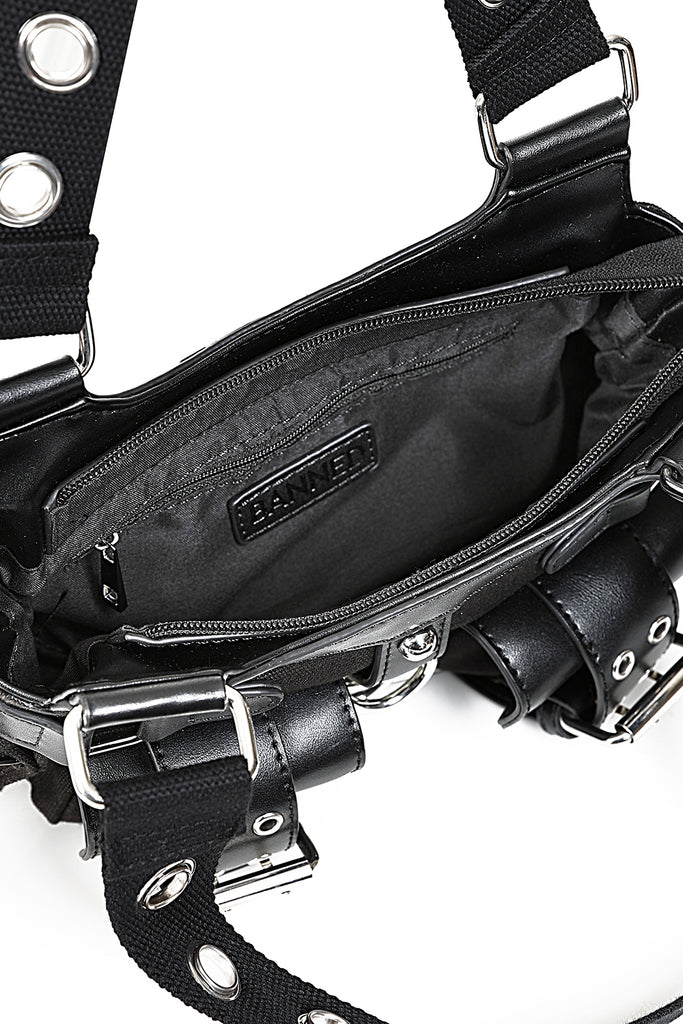Step up your style game with the Banned Dark Doll Handbag, a chic mini shoulder bag crafted from canvas and PU materials. This edgy yet functional design features multiple pockets, buckle accents, and a detachable shoulder strap for versatile carrying options. Perfect for everyday use or adding a bold statement to any outfit, this bag combines fashion and practicality seamlessly.