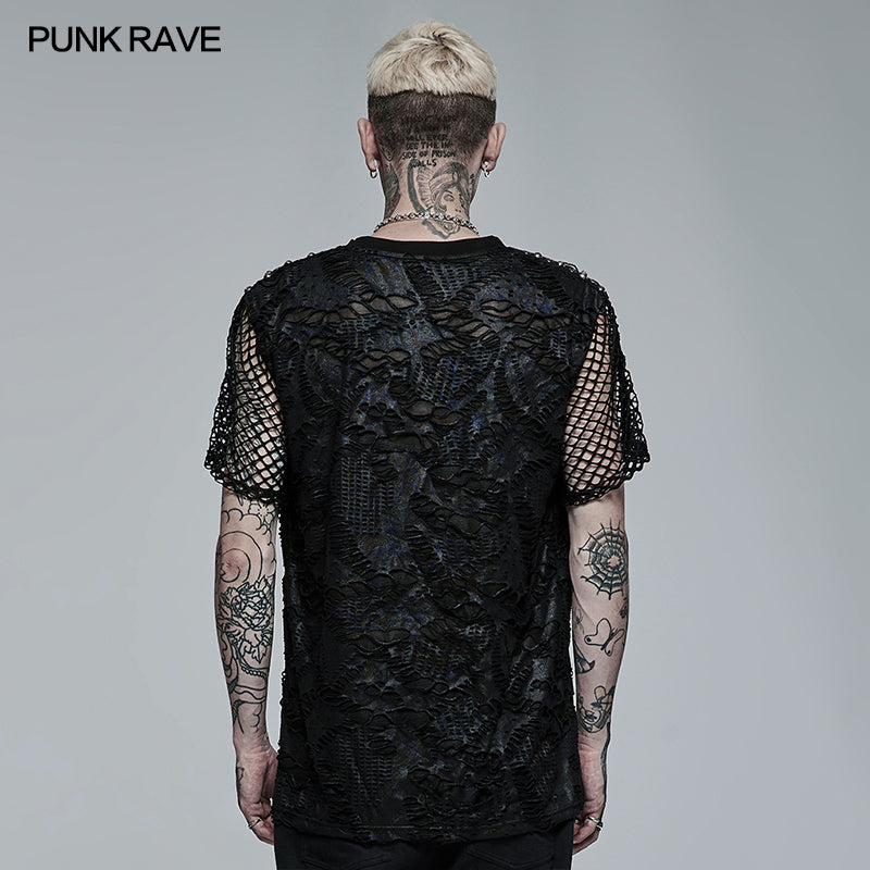 Goth Daily Wear Knited Broken Holes Short Sleeve T-shirt