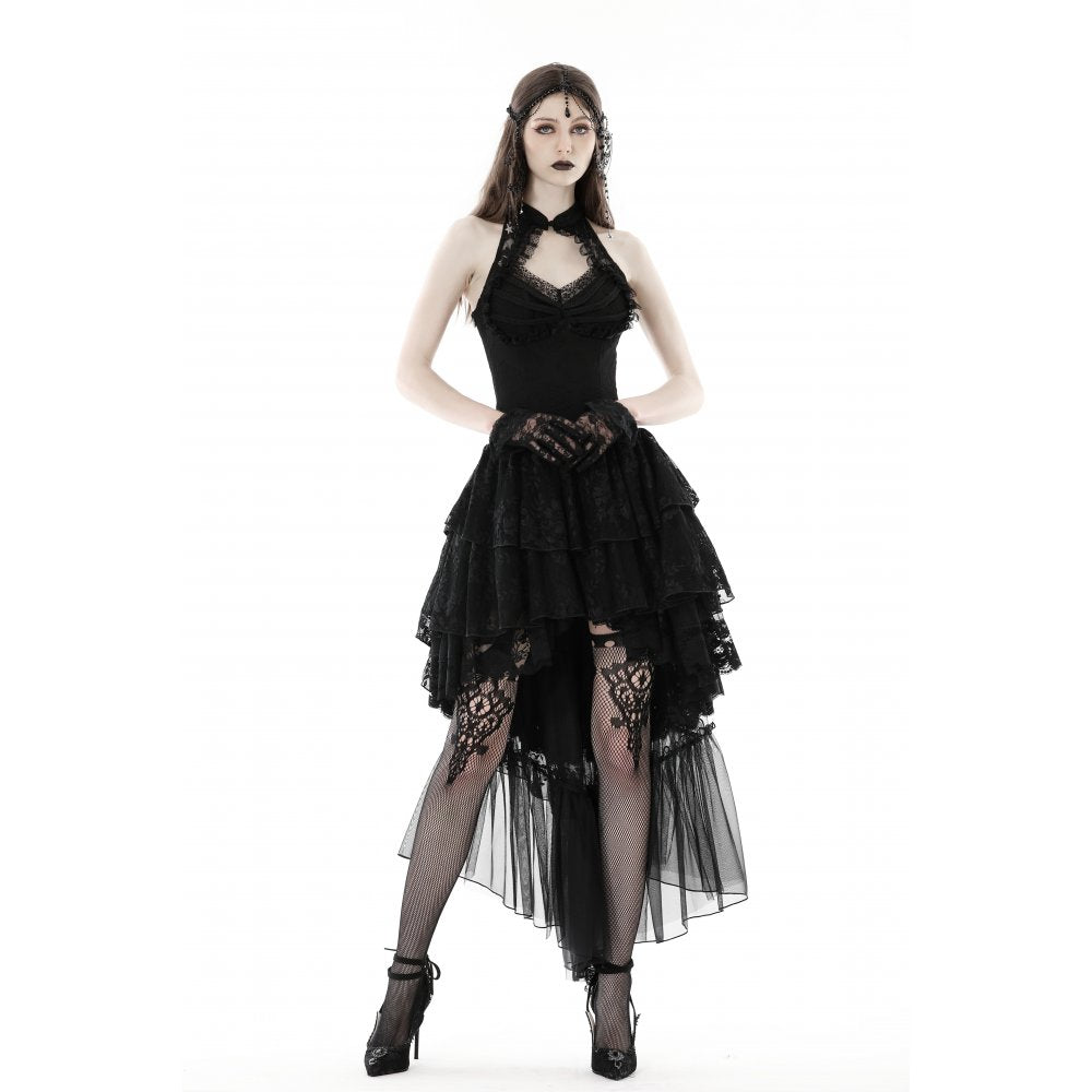 Gothic claw chest high low lace halter dress