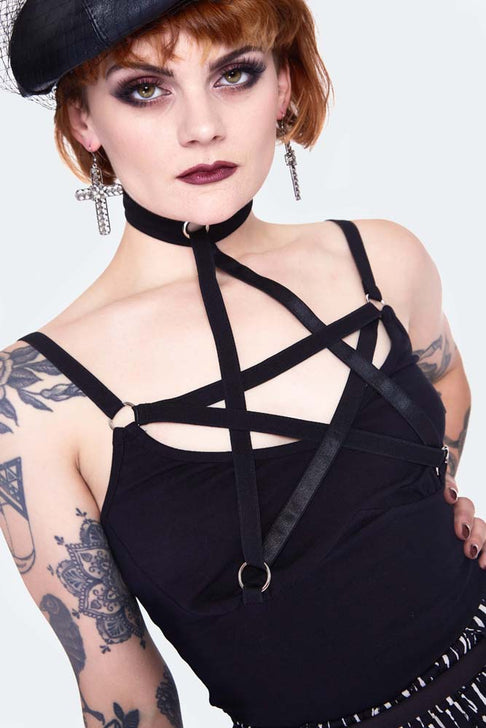 Pentagram Straps Lace Top By Jawbraker