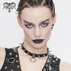 punk rock women spiked metal ring leather chocker