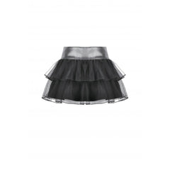Punk Mesh-Layered Skirt with D-Ring Ties Waist