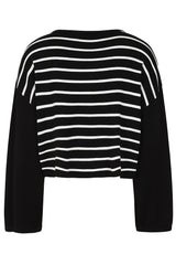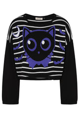 KNITTED JUMPER WITH FRONT AND BACK STRIPES CAT AND BATS KNITTED ELEMENTS ON THE FRONT AND LONG SLEEVES.