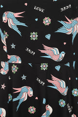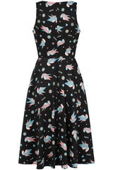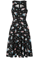 This charming Banned Retro Marilou Swallow print is Rockabilly inspired. This fit and flare dress has princess seams for the perfect fit. Pockets add to the charm of this fun dress!