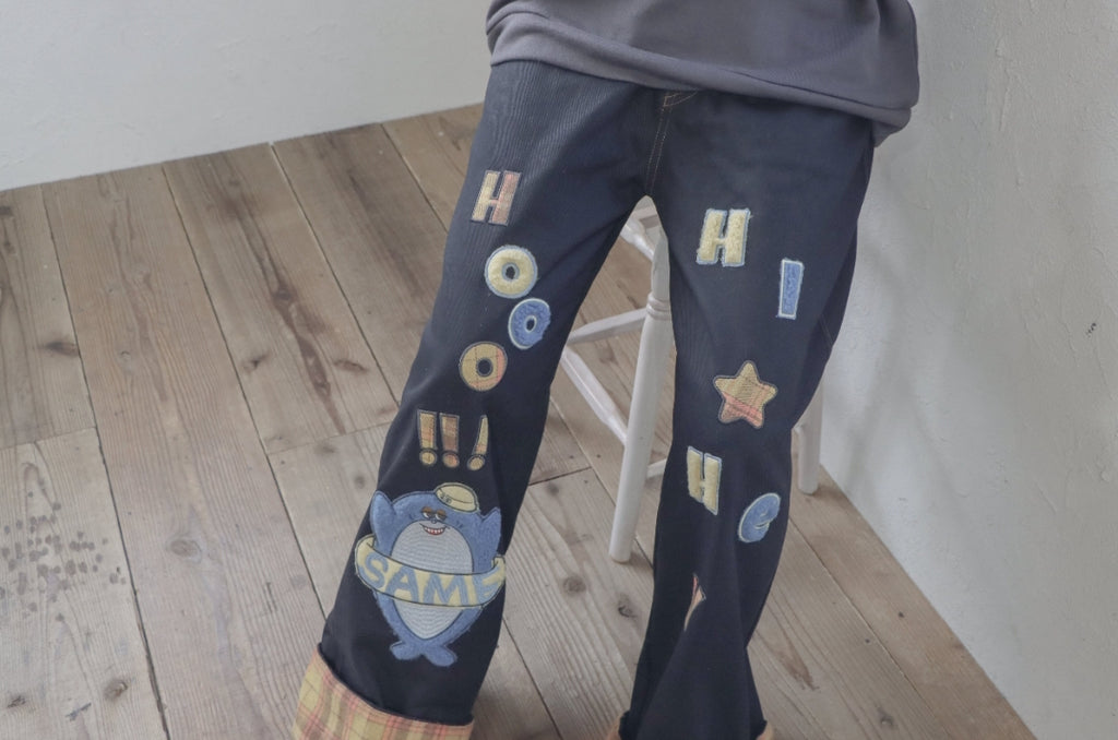 Boyish shark embroidered checkered pants