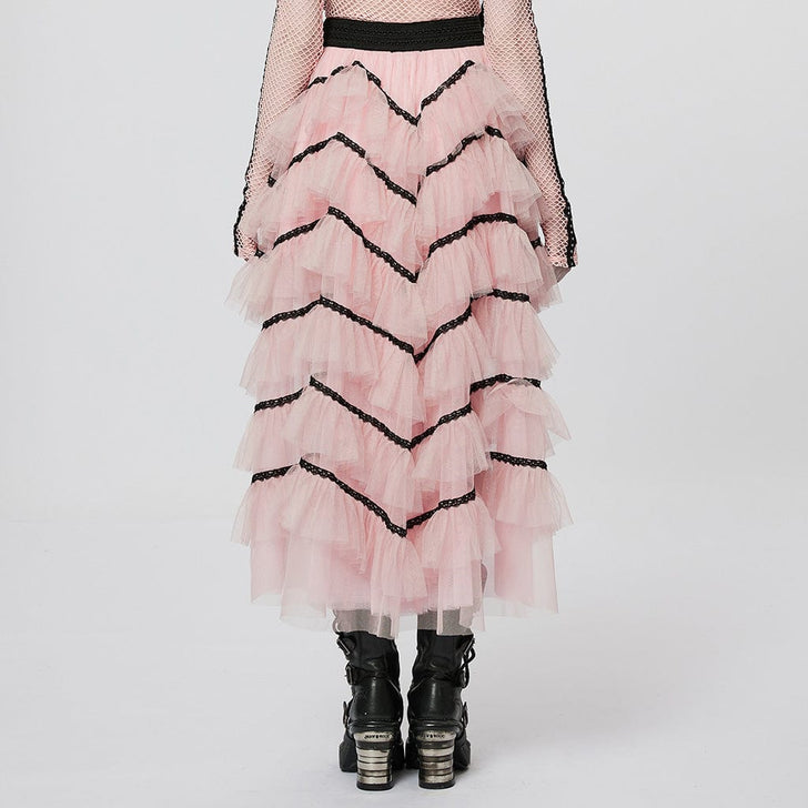 Women's Gothic Irregular Layered Mesh Skirt Black By PUNK RAVE