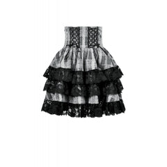 Cute Black and Grey Lolita High-Waist Tiered Skirt