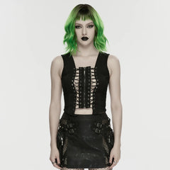 Edgy Lace-Up Black Punk Vests Gothic Style