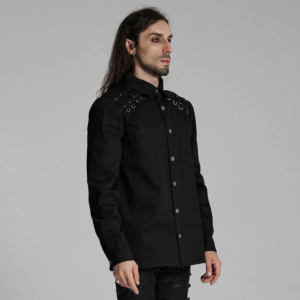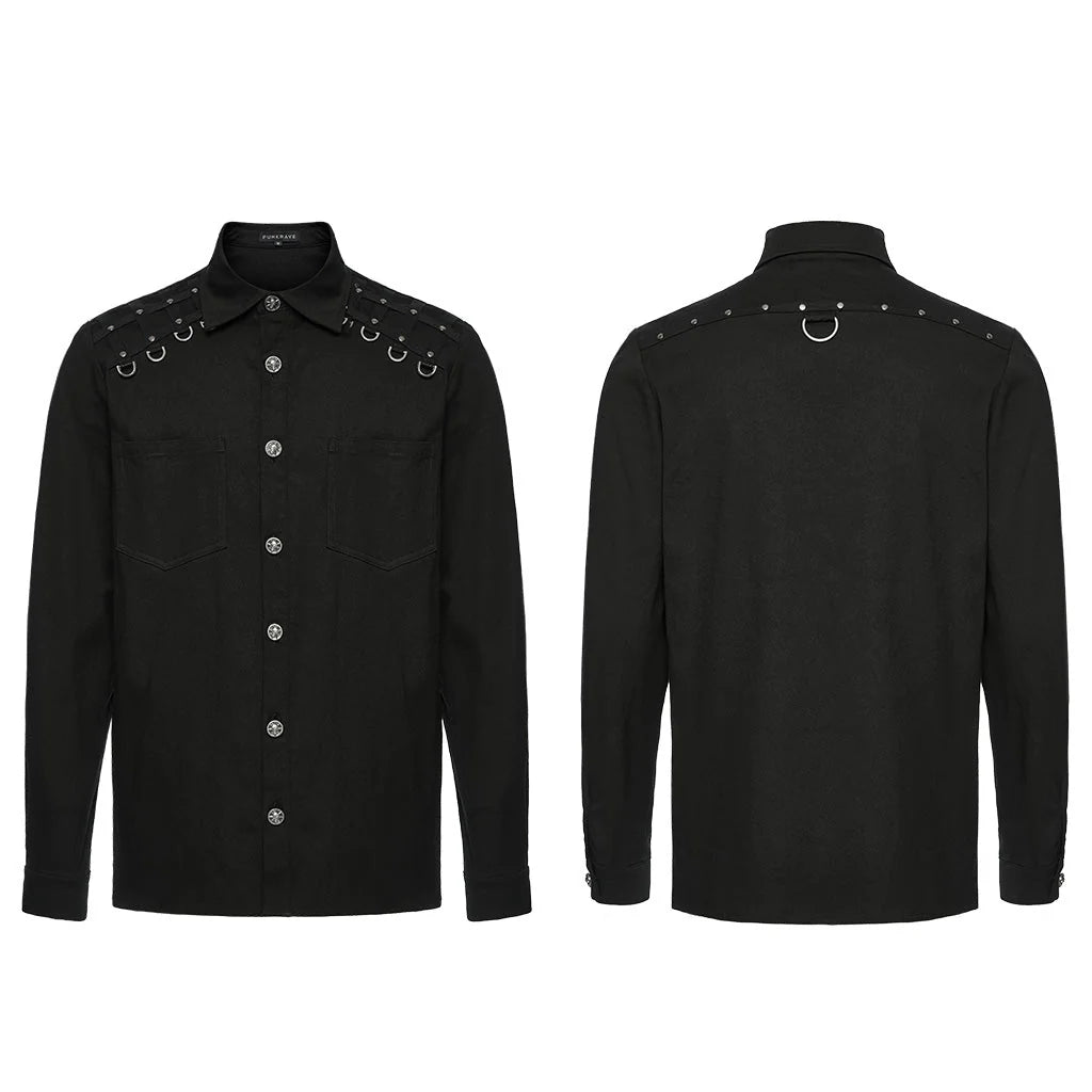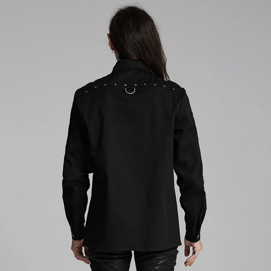 Gothic Rivet-Adorned Button-Up Black Punk Shirt