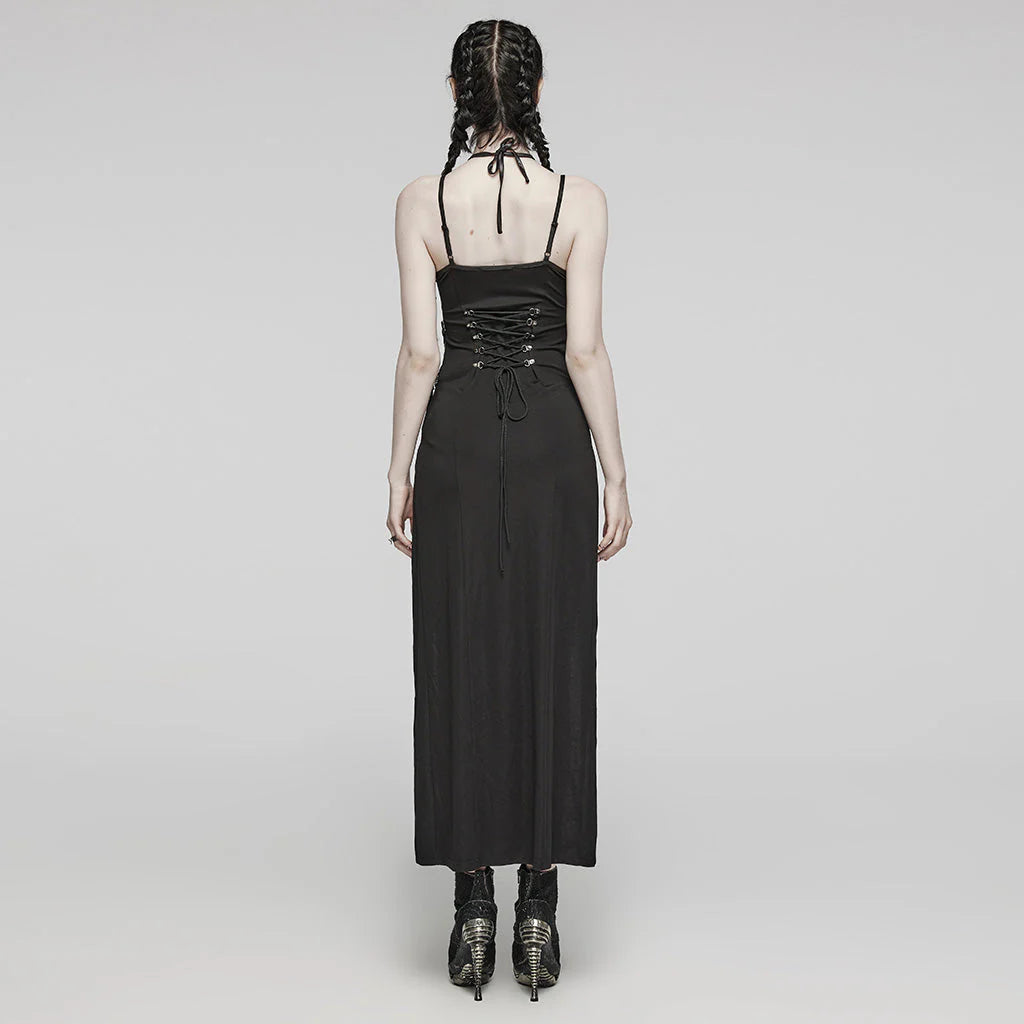 Gothic Strappy Lace-Up Punk Dress with Side Slits