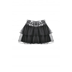 Punk Mesh-Layered Skirt with D-Ring Ties Waist
