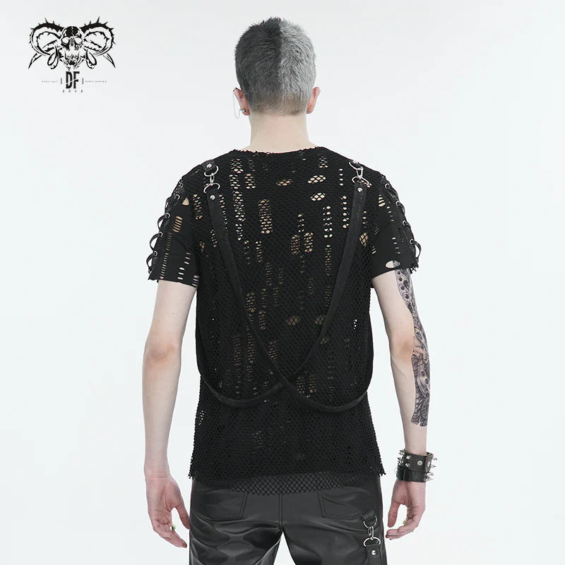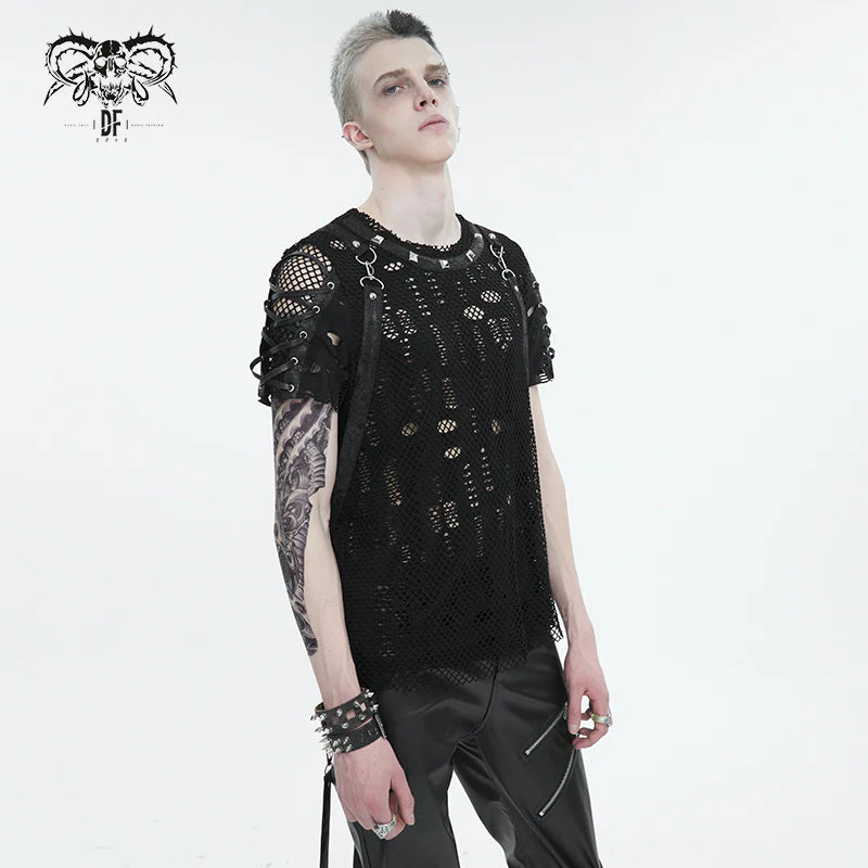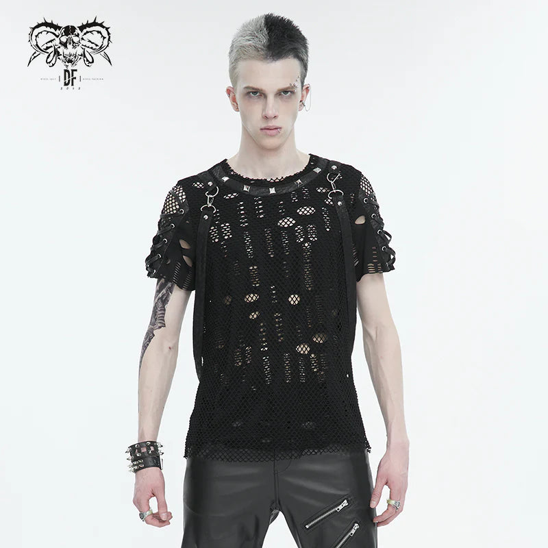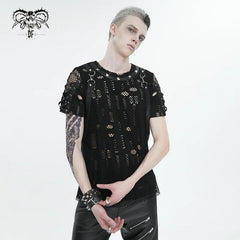 Ripped Knit Diamond Mesh Oversized Men's T-Shirt