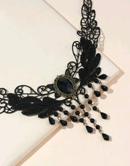 שרשרת צ'וקר עשויה בד תחרה עדין עם תוספות לעיטור, ליצירת מראה ויקטוריאני גותי