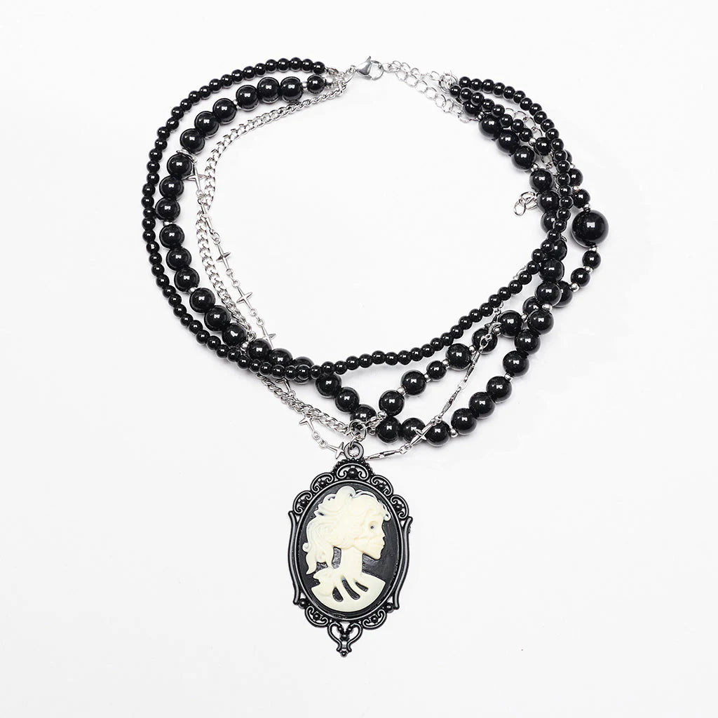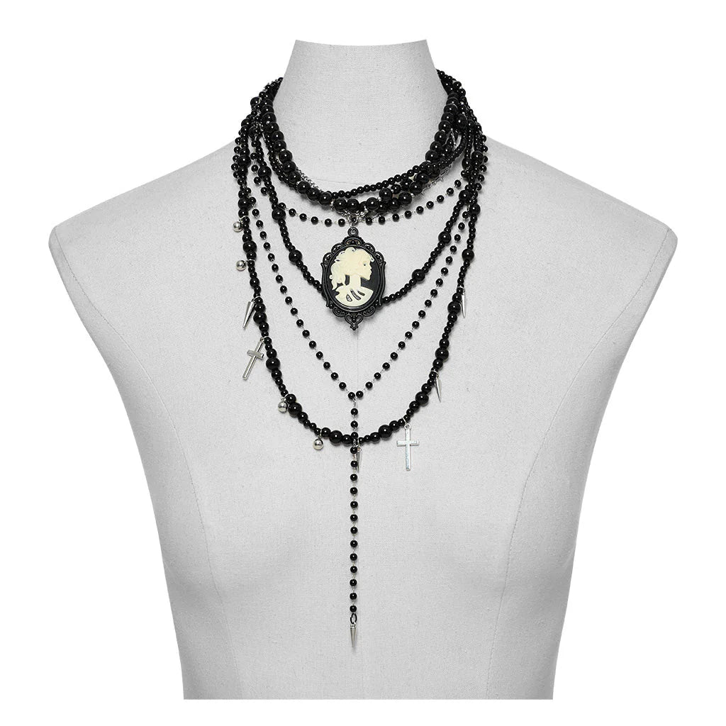 Vintage Gothic Multi-Layer Cross Bead Necklace